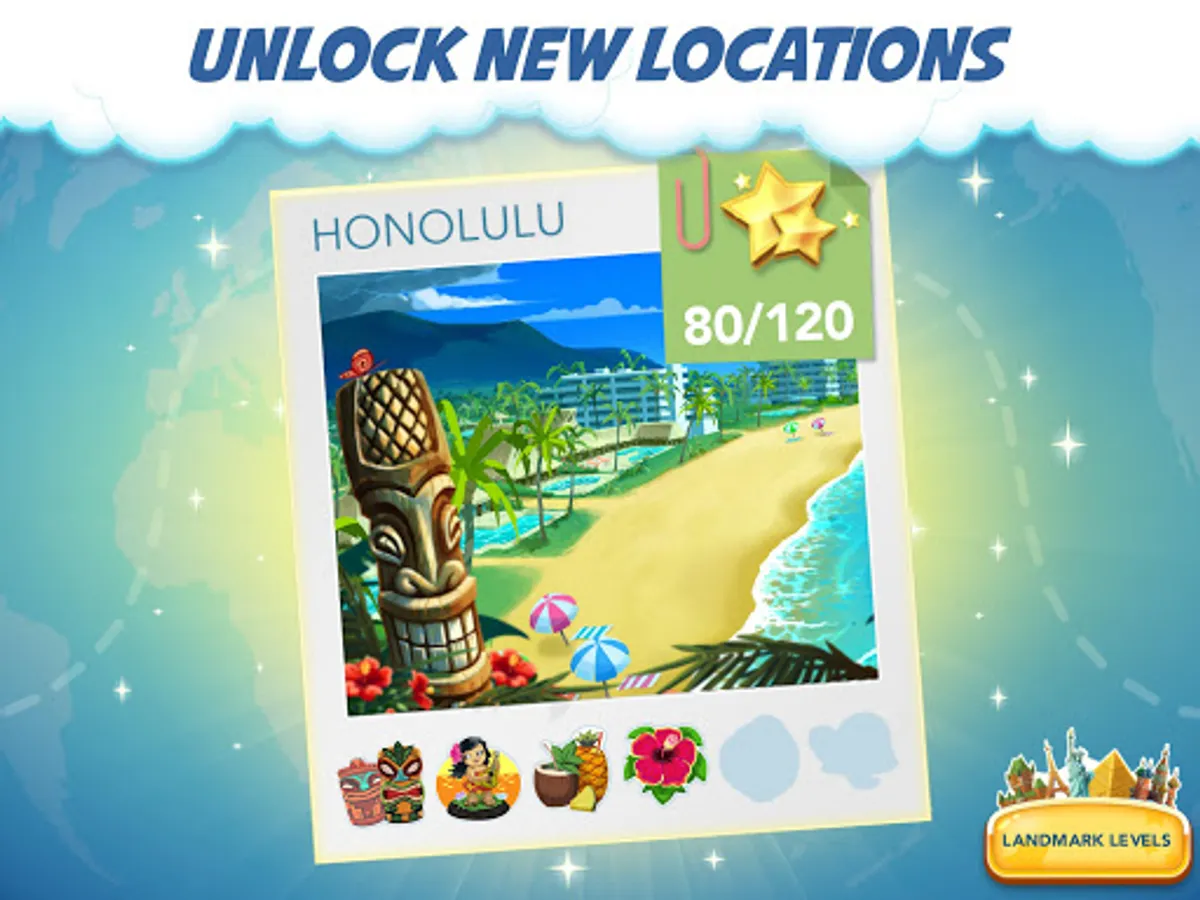 Explore all the beautiful destinations you love or have dreamed of visiting all in one game with puzzles from around the world! From the city of love, Paris, to the bounty of Cherry Blossom Trees in Tokyo; your First Class seat awaits you!