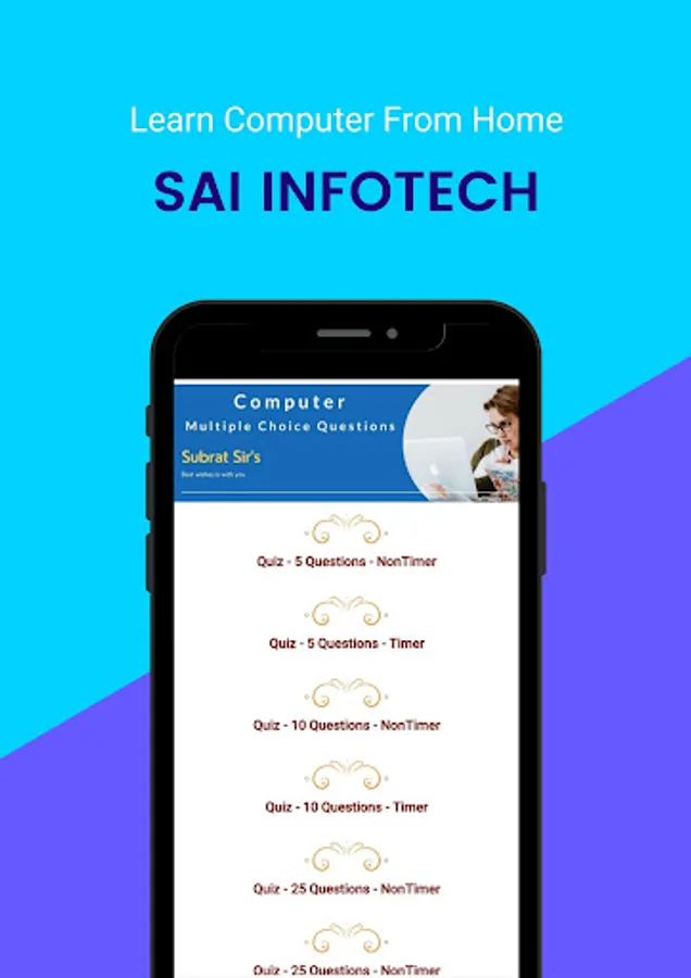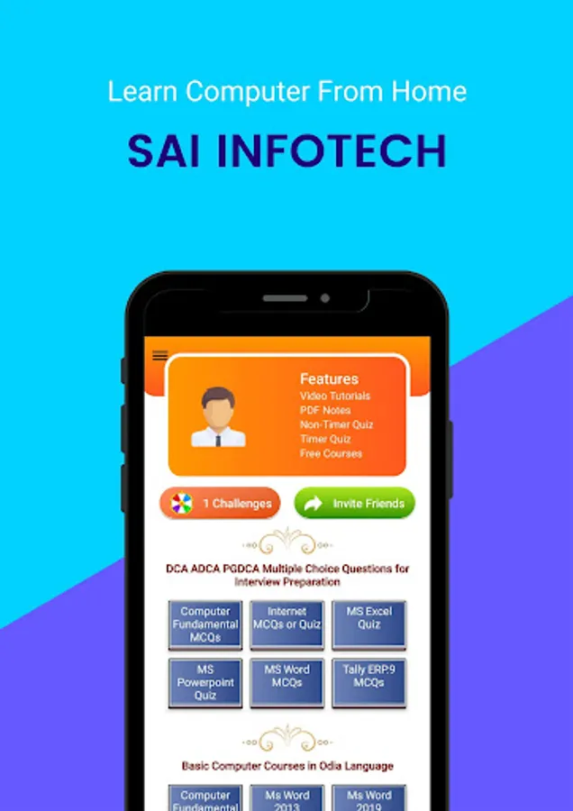 To provide better support to students SAI INFOTECH in association with TTRC Rayagada developed this android application. Now students of SAI INFOTECH can learn Computer from the comfort of their home.
