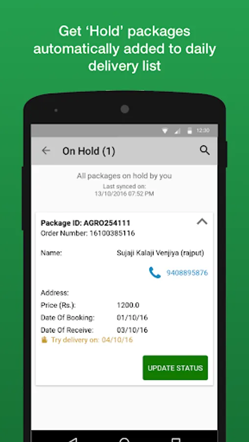 - Allows marking packages as 'Hold' and 'Return' from the app itself.