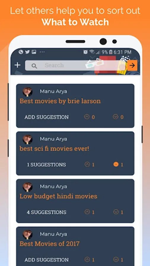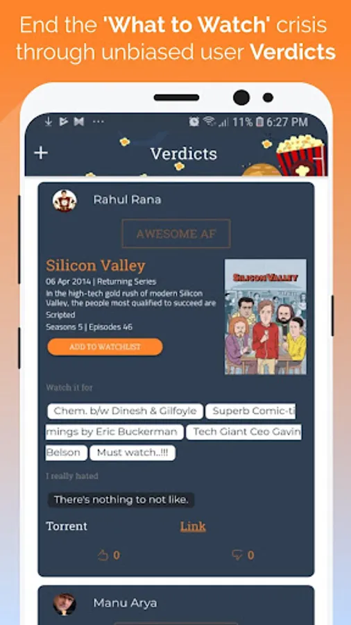 The idea is simple, people give a micro review of the flick they recently watch, through a ranking the hottest verdicts go to top. These verdicts gives you an awesome list of movies and tv series that you may watch.