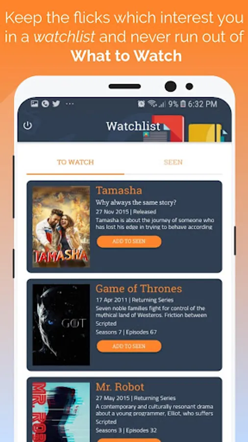 4. Watchlist - Whenever you see a movie worth watching add that to your watchlist, so you are always loaded with options.