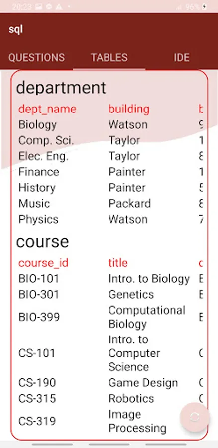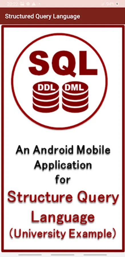 UniSQL is an Android Mobile Application for the topic Structured Query Language (SQL) for University Enterprise example of Database Management System of Third Year of Computer Science and Engineering.