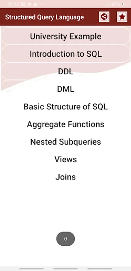 SQL topics related to the University Example covered in this mobile app are