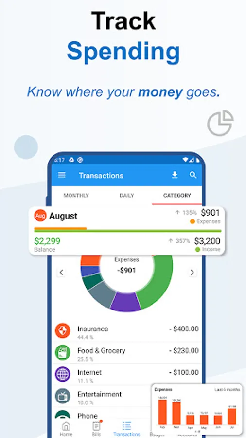 Use TimelyBills to manage your accounts Savings, Credit card and Investments etc, all in one place. Track your spending, organize bills and subscriptions, get reminders, and more. Your account is secure with bank-grade data security and privacy protection. So, you can use it as a bill tracker and debt consolidation app, as well as budget planner and account & bills monitor.