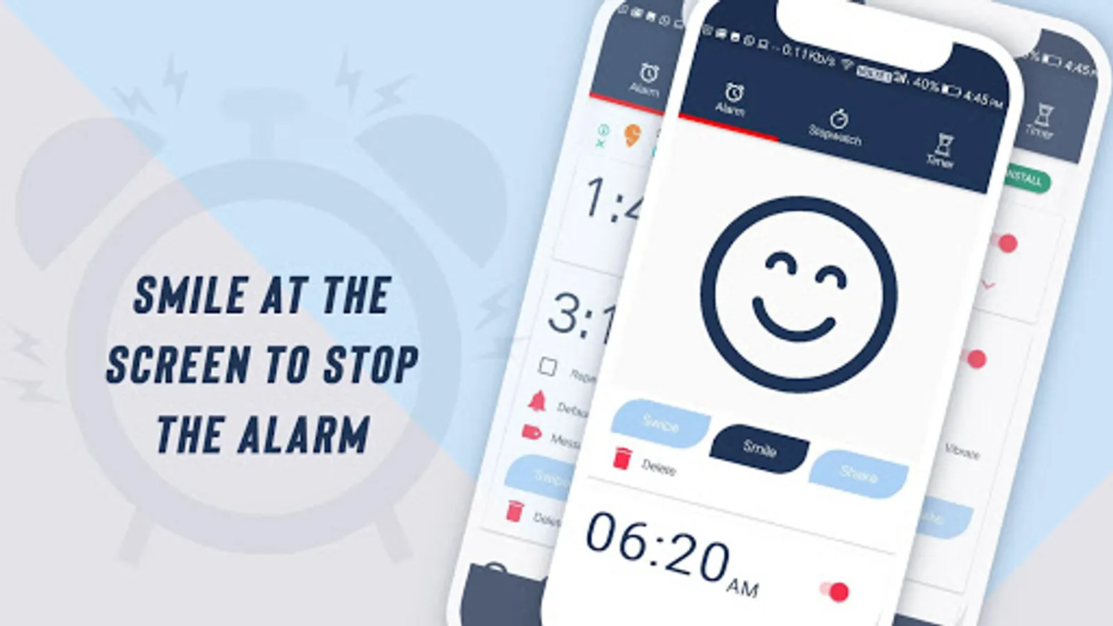 Smile Mode :To Start a Fresh Day with Happiness this Feature is for them. To stop the alarm, you will have to simply smile at the screen for few seconds. The camera captures the full smile and stops.
