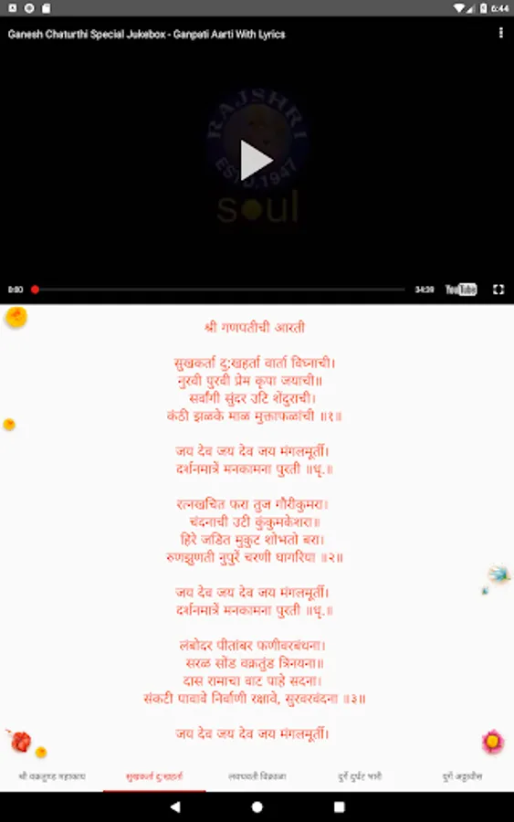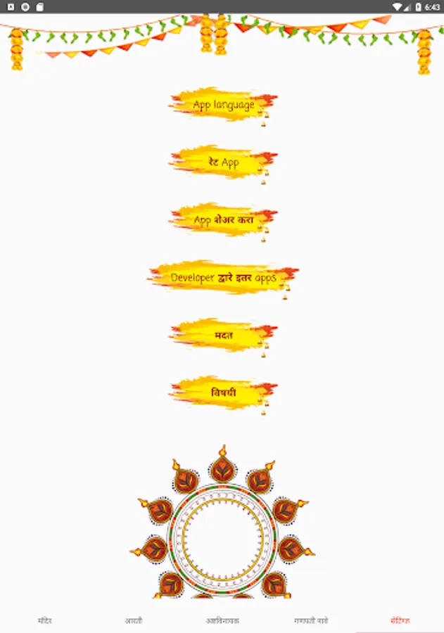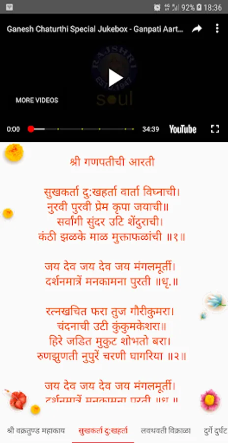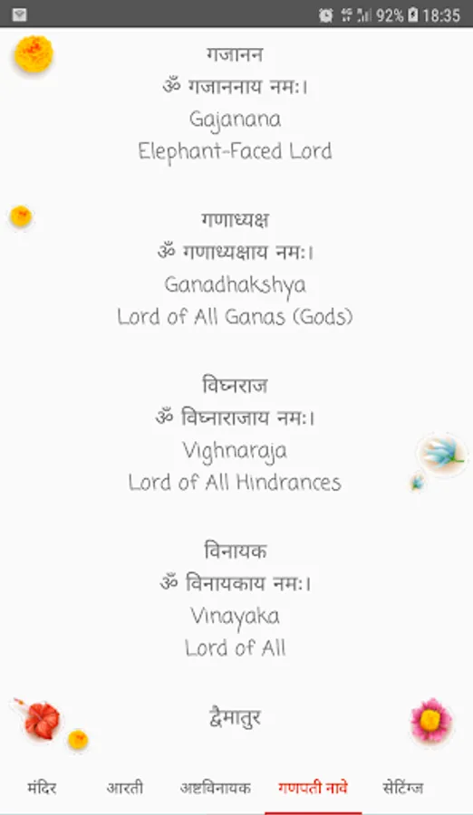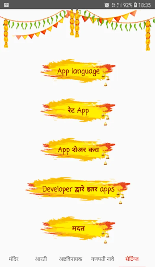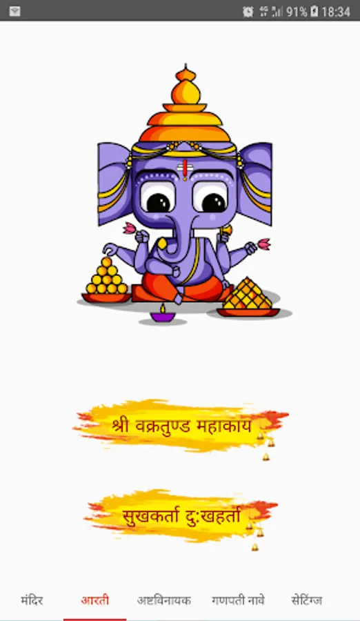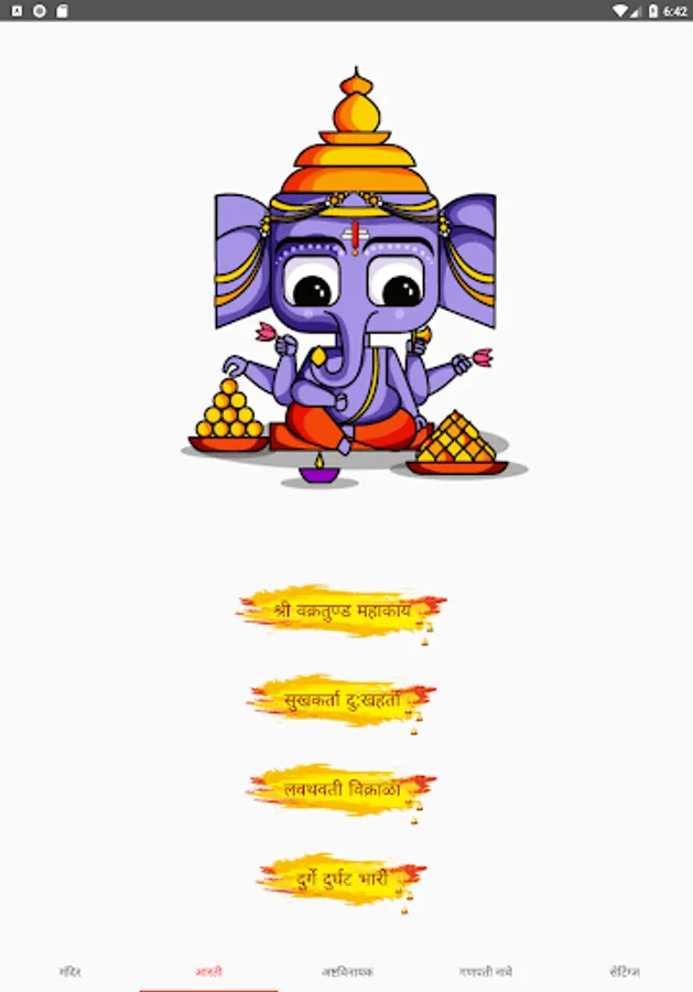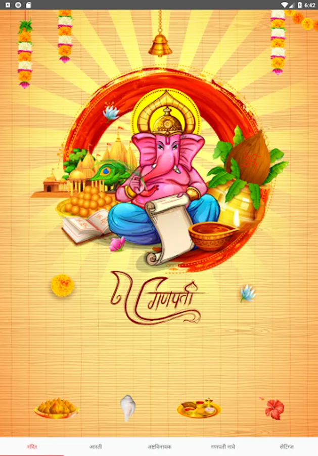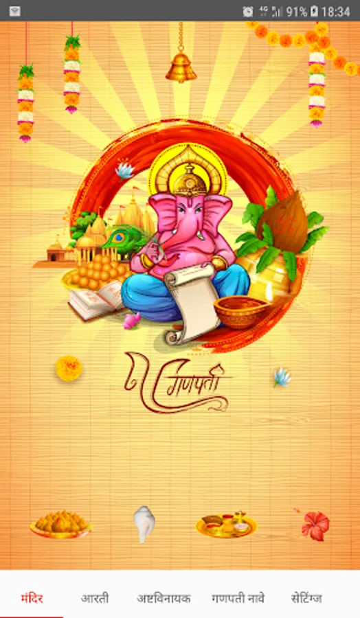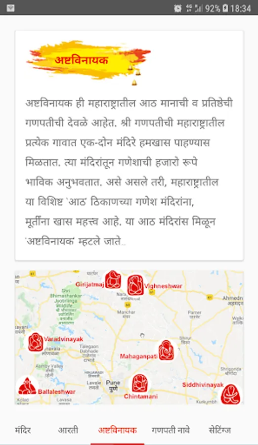 The app contains Mandir, Ganesh ji aartis used in Maharashtra during Ganesh Chaturthi, information about Ashtavinayak darshan, Ganesh ji names and Ganesha wallpapers.
