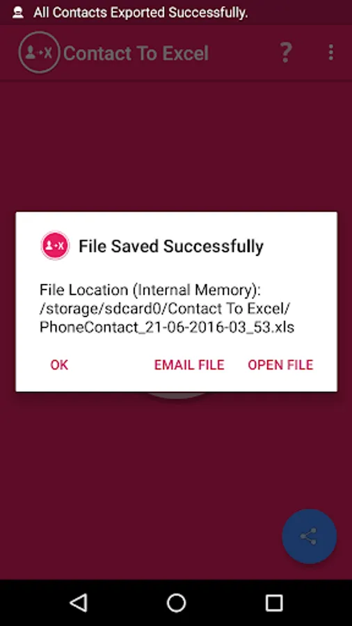 2. Export all contacts fields to excel (.xls).