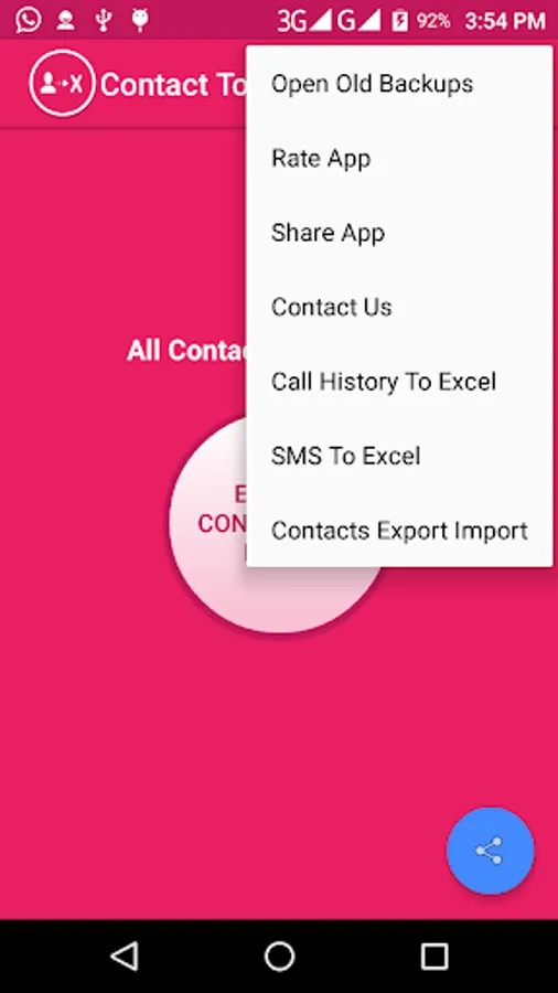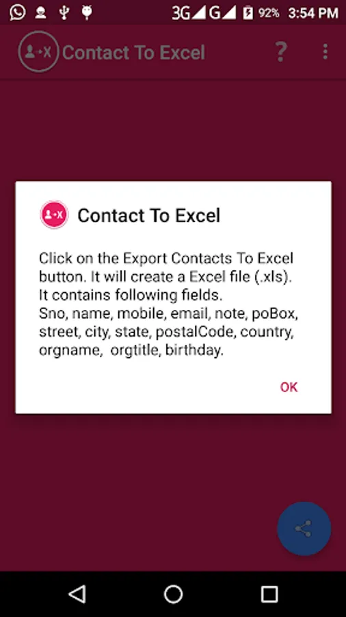 1. Export contacts fields to excel ( name, phone number, email, note, address, organization, Date of birth)