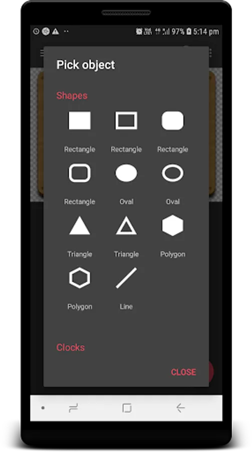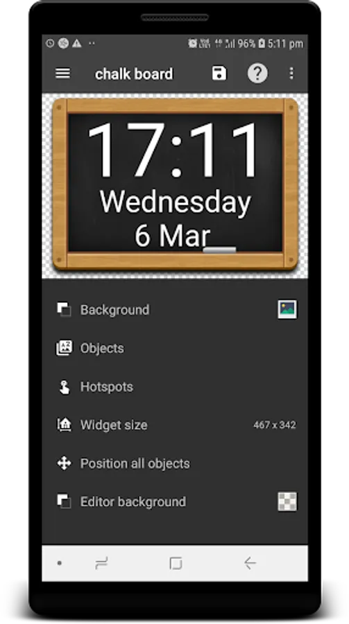 Widget objects - text, shapes, images, weather, graphic (progress), analog clock etc.