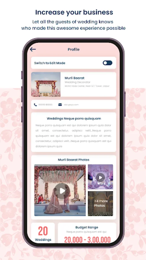Are you a wedding vendor looking for a game-changing solution to streamline your services, maximize your revenue, and leave a lasting impression on your clients? Look no further! VivaHIT for Business is the ultimate app designed exclusively for wedding vendors like you, providing a seamless platform to create and customize your client's dream weddings, all in one place.