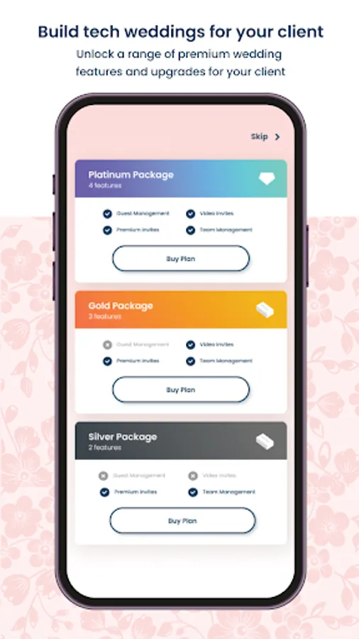 1) Unlock Exclusive Features for your client: Enhance your client’s weddings by unlocking a range of premium features and upgrades through the app. From guest management services to their personalised wedding app, you can offer your clients a menu of additional services like wedding invites, guest RSVP service, task management tools, and wedding games, allowing them to truly personalize their big day.