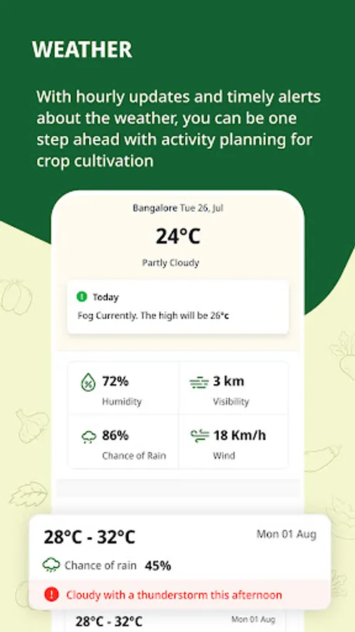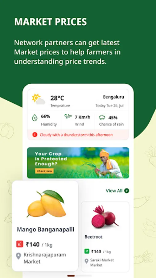 Weather Updates: With hourly updates and timely alerts about the weather, the ONP can guide farmers one step ahead with their activity planning for crop cultivation.