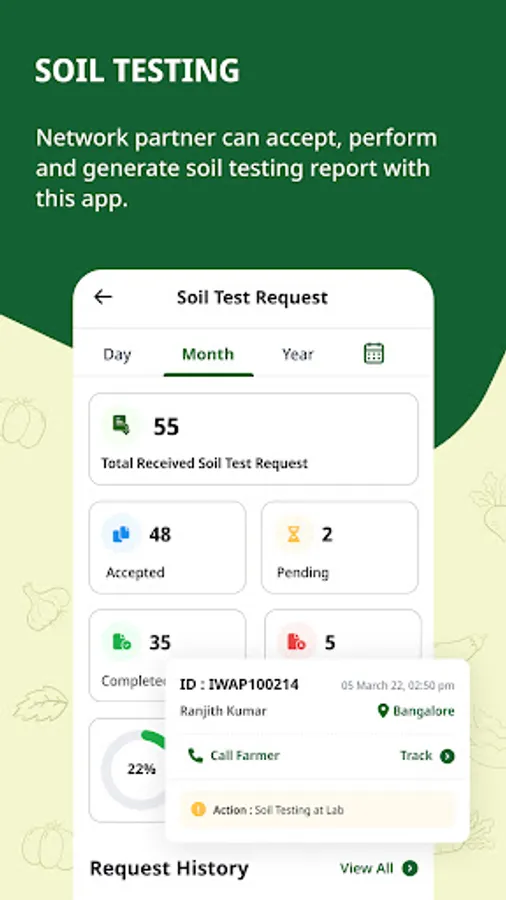 Soil Testing: With the help of the ONP app, the Outgrow Network Partners can now accept, perform and generate Soil Testing Reports within 24-48 hours.