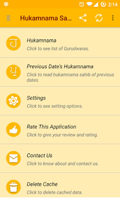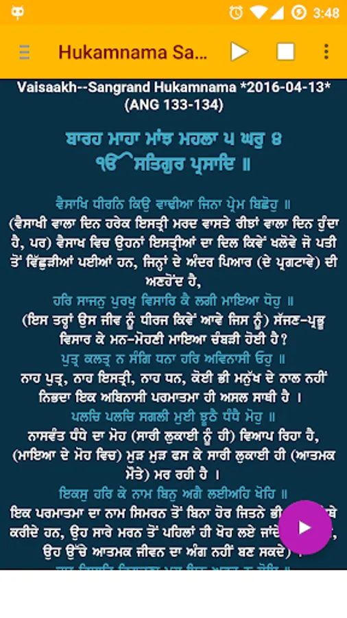 This is our small effort to provide Hukamnama Sahib text from Five (Panj) Takhat Sahib and many Gurudwara Sahib on Daily basis. User can read hukamnama sahib in multi language, English, Hindi and Punjabi with translation vyakhya. Below are some features and detail about application :