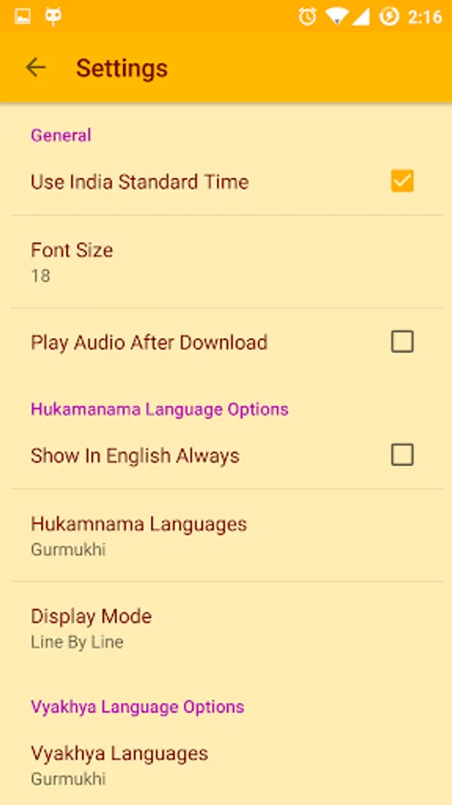 1. User can choose language from Gurmukhi, Hindi and English for Hukamnama Sahib.