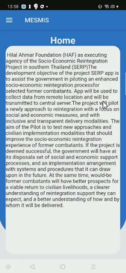 MES MIS is an app for data collection from field for HAL Foundation under WB project in BKK. The access of app is restricted and can be accessed with valid access credentials only. Please download and install this app if you are a valid users of the MESMIS