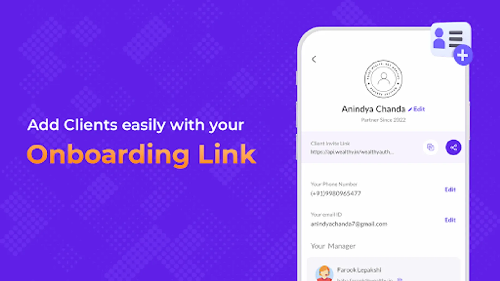 Grow your mutual fund distribution business and other financial products and become wealth partners for your clients.