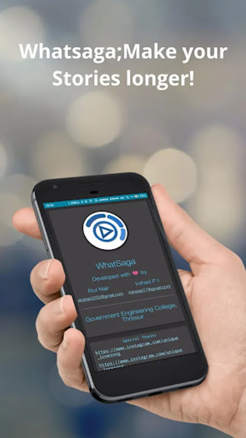 WhatSaga is a utility tool to help you post stories longer than 15 seconds by splitting them into parts of 15-second videos and sharing them all at once in an instant!.