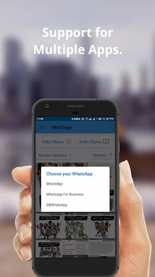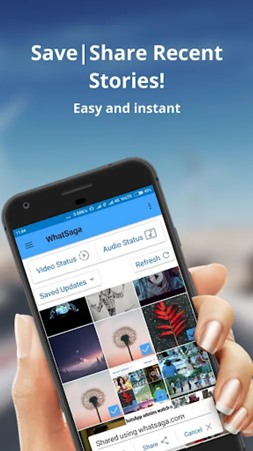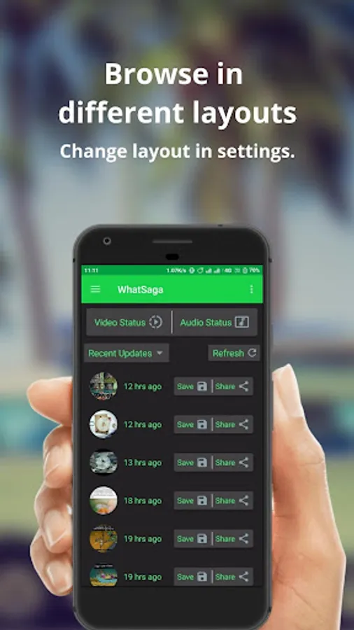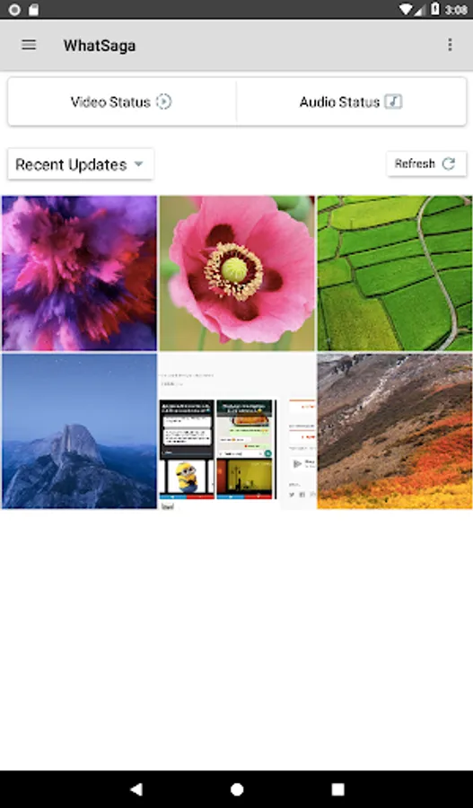 WhatSaga helps you see all the recent statuses and Save and Share them