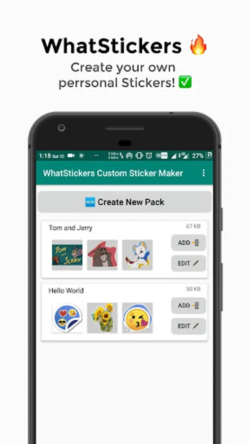 WhatStickers is a Sticker maker that can help you create your own sticker packs with photos from your gallery and share it with your friends!