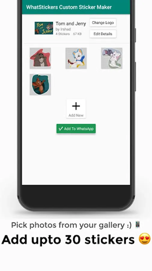 4. Click on Add to Whatsapp to publish your new sticker pack to whatsapp.