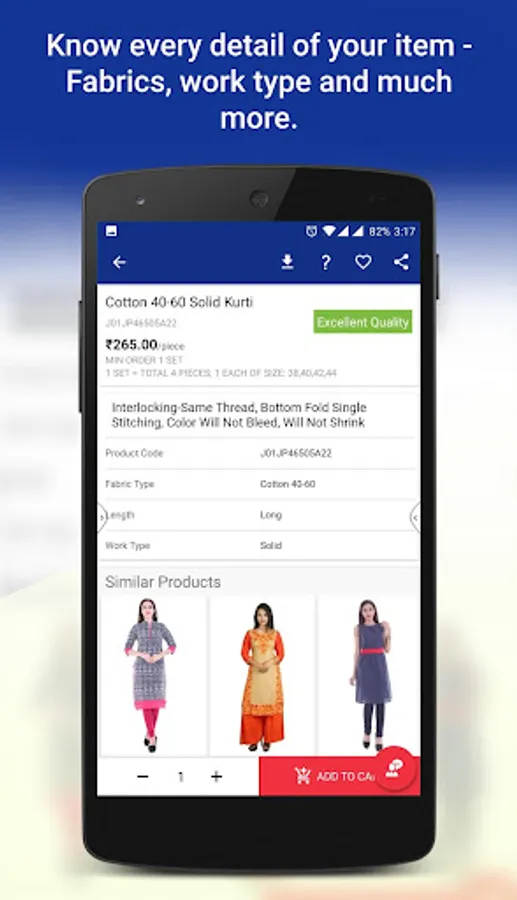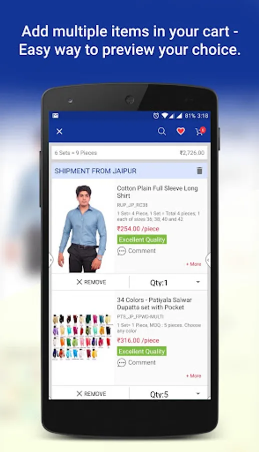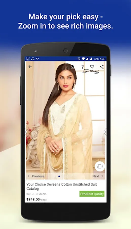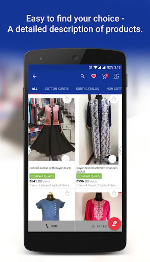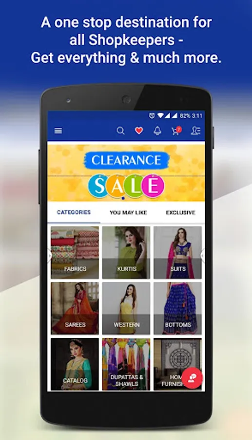 Experience our end to end B2B e-commerce platform to buy/sell throughout India at best wholesale prices directly through our app. Our App brings to you with more than 2Lac designs from more than 1000 active sellers browsing through categories like Women, Men & Kids Clothing, Night & Inner-wears, Jewelry, Footwear and Home Furnishing.