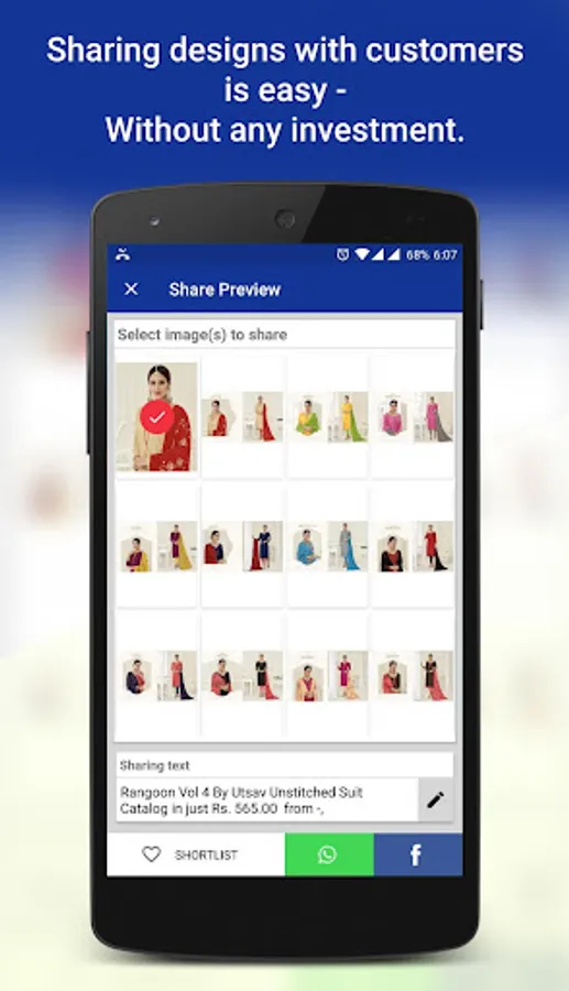 Broadcast Wholesalebox designs on WhatsApp and Facebook with your retail selling prices and your showroom branding on click of a button, get their demand and then buy from Wholesalebox for your showroom, thereby lowering your dead stock.