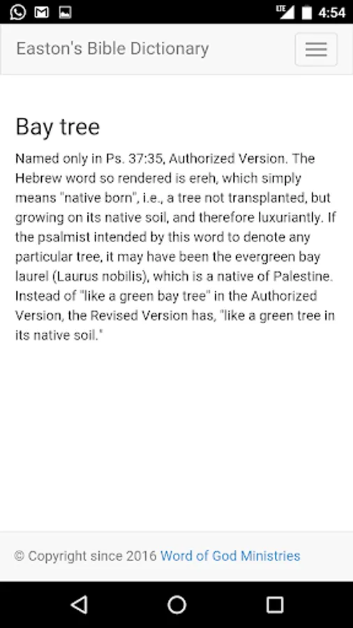 This Free "Easton's Bible Dictionary" Version 1.0 app is brought to you by Yesudas Solomon from "Word of God Team" a branch of "Word of God Ministries".