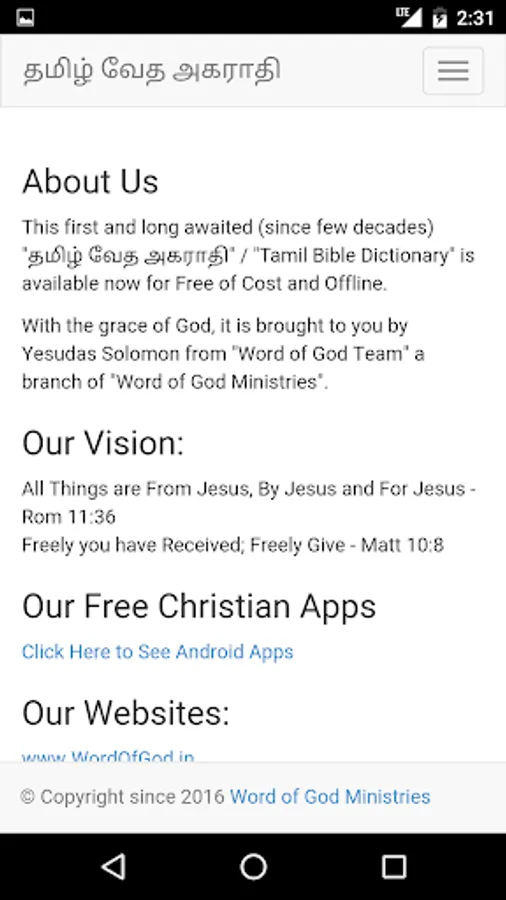 This first and long awaited (since few decades) "Tamil Bible Dictionary" is available now for Free of Cost and Offline.