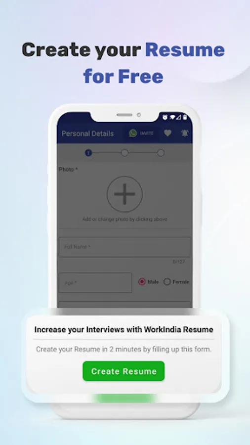 The WorkIndia app has been developed with a focus on keeping the use as simple as possible! Simple, sleek and focused on one purpose: getting you a job. See for yourself the process is just waah!!