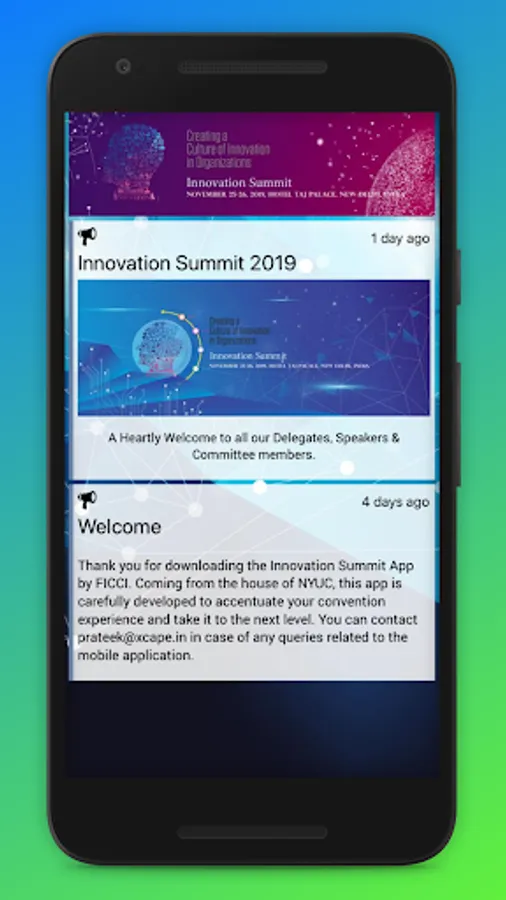 This is the official mobile application for FICCI Innovation Summit 2019. To get the most out of your convention experience, please use the app to check out the following features: