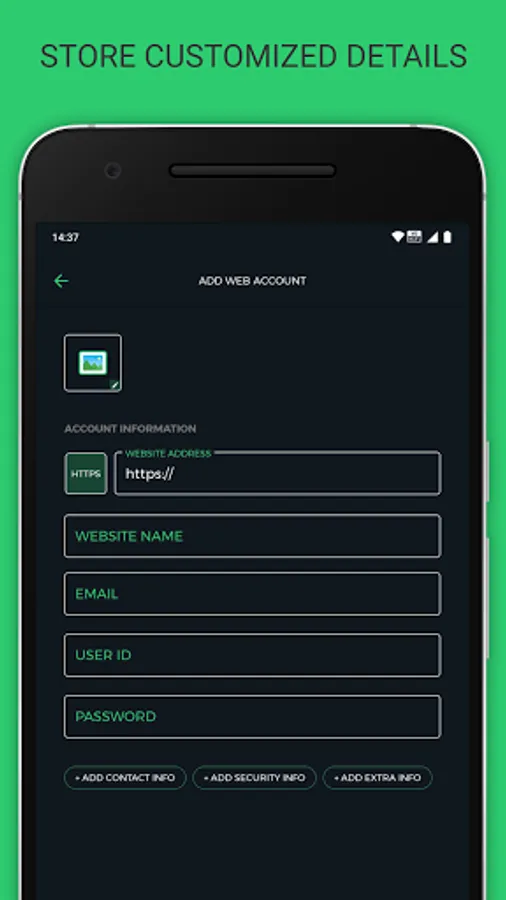 When you add Application, Bank, Card or Website Account, you can choose to encrypt the sensitive information like passwords, answer to security questions and note. You have to remember only your Encryption Password witch xCrypto.