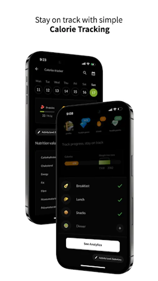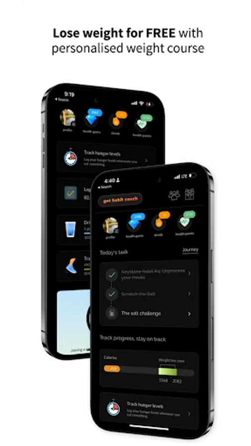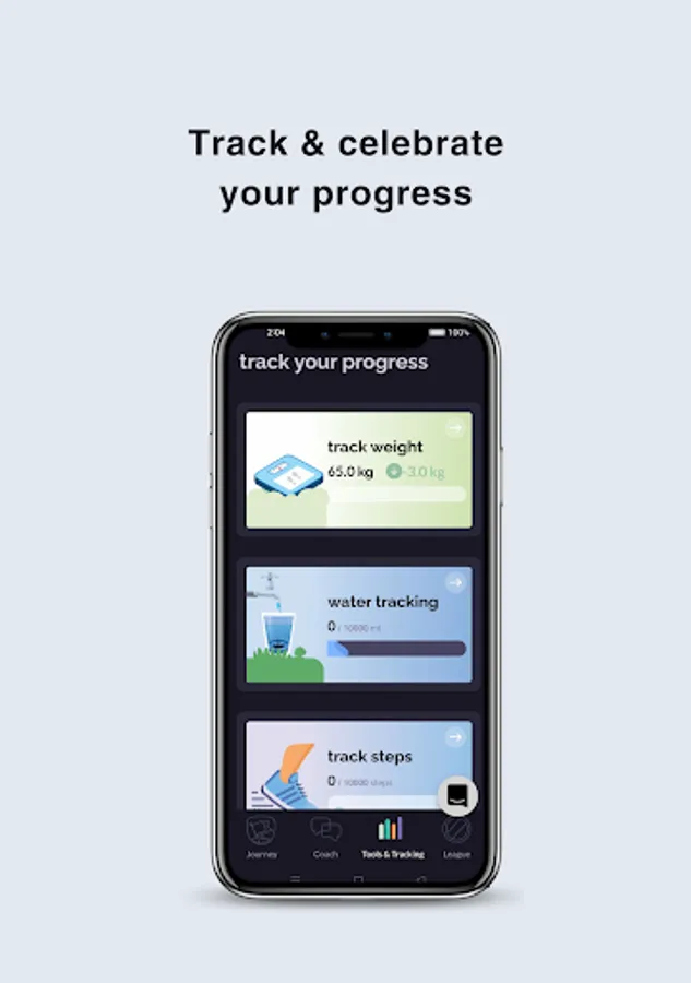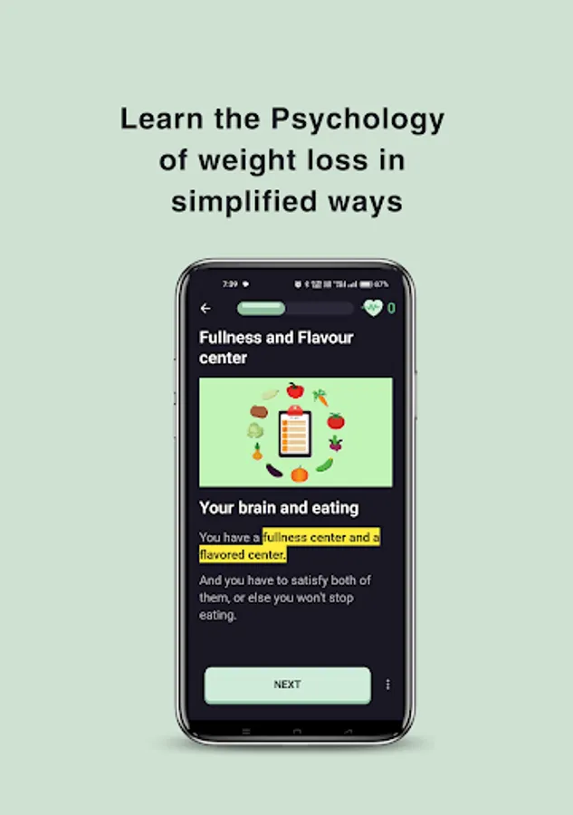 The app is loaded with trackers. It has a step tracker, water tracker, sitting tracker, weight tracker to log weight. It also has many practice tools which help our users to lose weight, such as Mindful eating , Calorie Tracker with 1.5 millions food data, weight loss tracker, hunger tracker and more