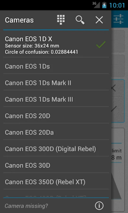 A comprehensive, regularly updated DSLR database is included to provide support for every DSLRs released till date. The app provides highly accurate results using exact image sensor dimensions for different cameras (most online versions use generic, truncated values of 'circle of confusion'). HyperFocal is designed to ensure availability of advanced configuration options for pro users and serious photographers.