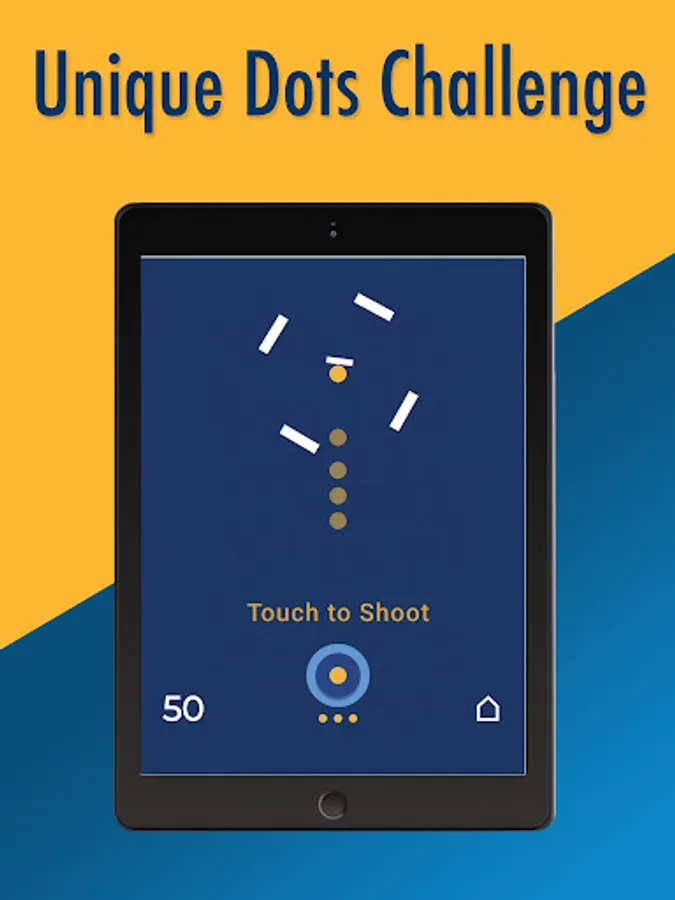 Playing the game is easy: Simply touch to shoot the yellow dot avoiding the obstacles. You get three lives each time you try. 50 shots to the yellow dot to cross a level. You can shoot multiple dots by keeping the button pressed or simply shoot dots, one by one by tapping the pad. The right moment is important as the dots will waste if they hit the barriers.