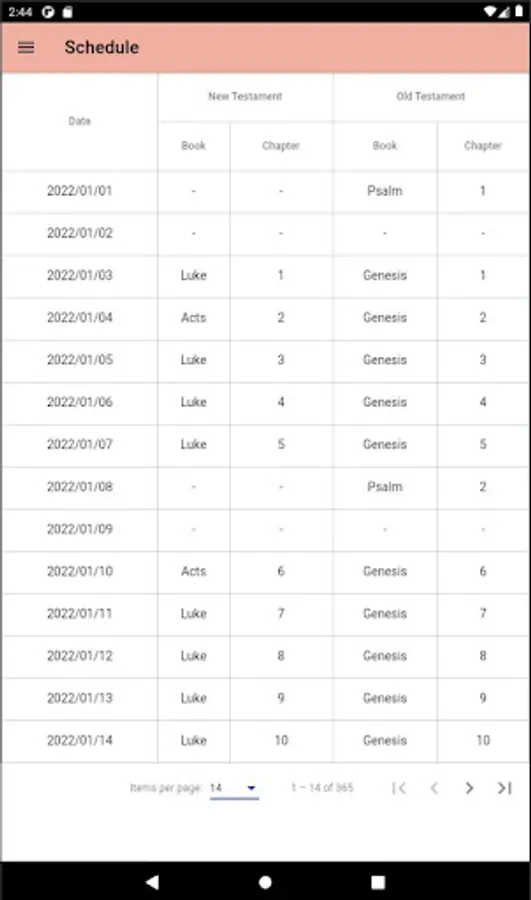 Old Testament once every 3 years and the New Testament.