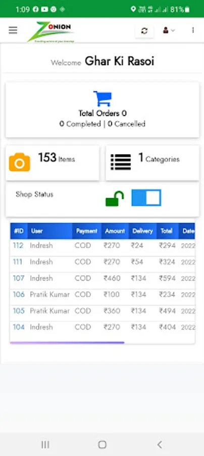 Zonion Merchant Screenshots