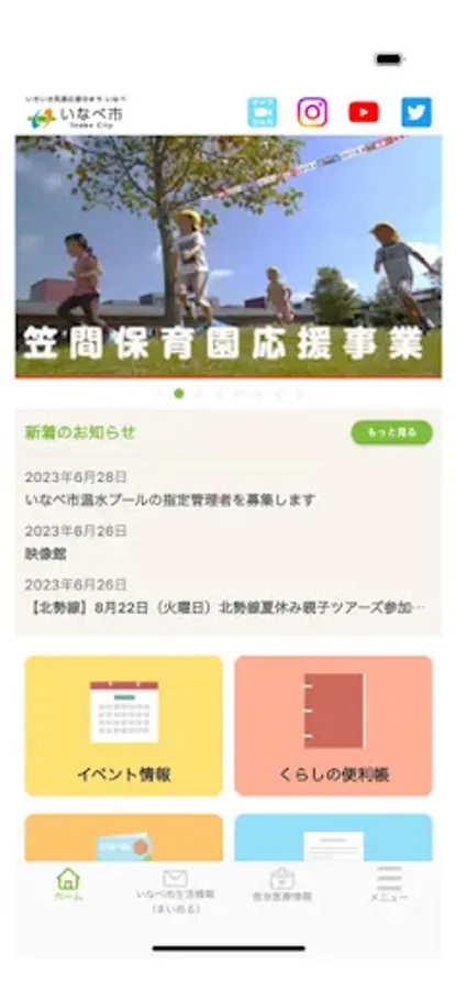 This is an official app that provides administrative information such as "living information" and "event information" of Inabe City according to the time and supports your life.