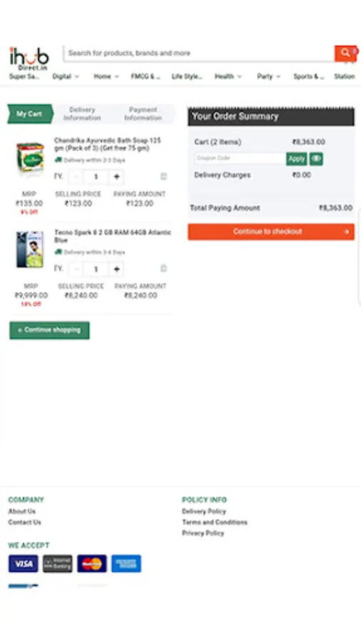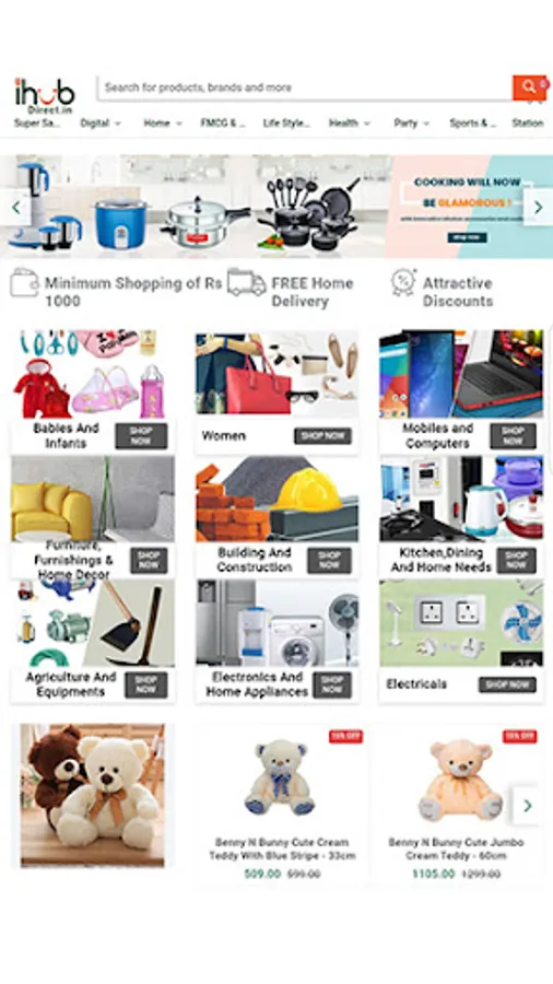 iHub Direct is one stop shop that provides a wide range of product categories at competitive prices on a single platform. iHub Direct serving different categories such as Grocery, Electronics, Electricals, Party Supplies, Toys and Games, Kitchen Appliances-, Furniture, Fashion Needs for Men, Women, Kids and Infants, Footwear, Health and Wellness, Pooja Items and many more. At iHub Direct we strive to achieve the highest level of “Customer Satisfaction”.