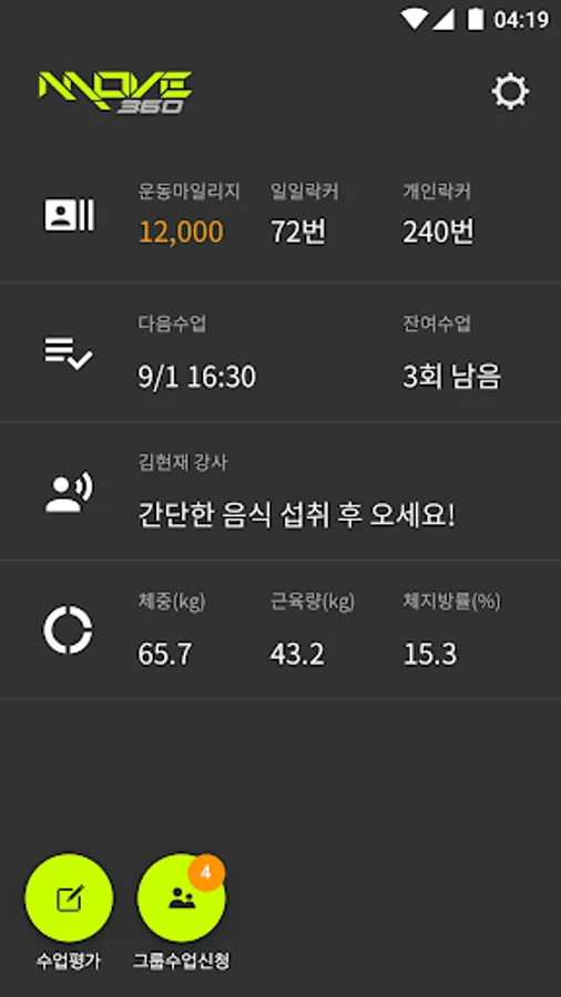 MOVE360 1: 1 training & group lessons with professional trainers can be conveniently booked, changed, or requested on APP.