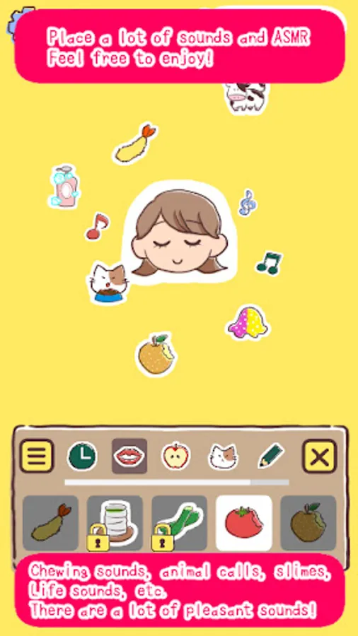 It is an application that you can easily enjoy various sounds that make your brain happy, such as sound effects, chewing sounds, sounds made by animals, slime sounds, living sounds, environmental sounds, healing sounds, and sounds that invite you to sleep.