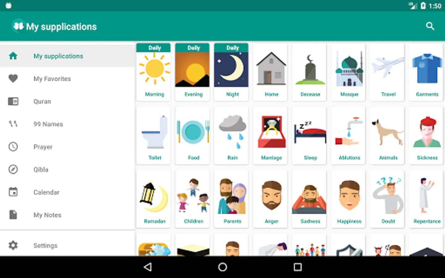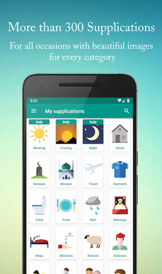 • A search functionality to easily find the right supplication in no time.