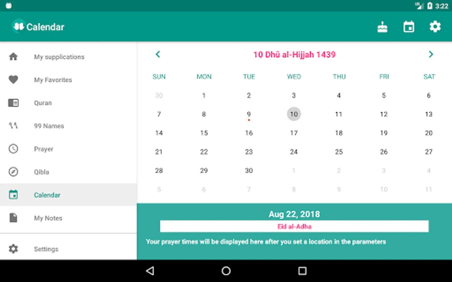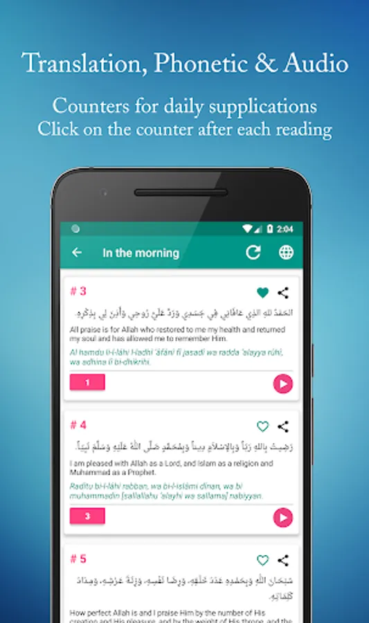 Daily Supplications enables you to read and listen to more than 300 different islamic duaas everyday. It also features prayer times, Hijri date, qibla and custom reminders to give you the right supplication at the right time.