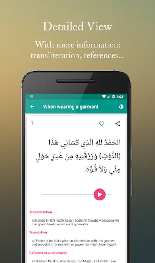 • The possibility to mark supplications as favorite so you can find them easily.