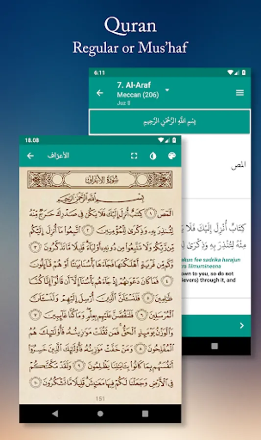 • Translation & Transliteration for the Quran (can be enabled from the settings).