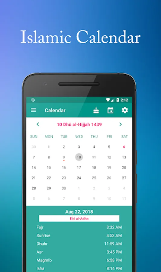 • Islamic Calendar (Hijri Date) with the different Islamic events.