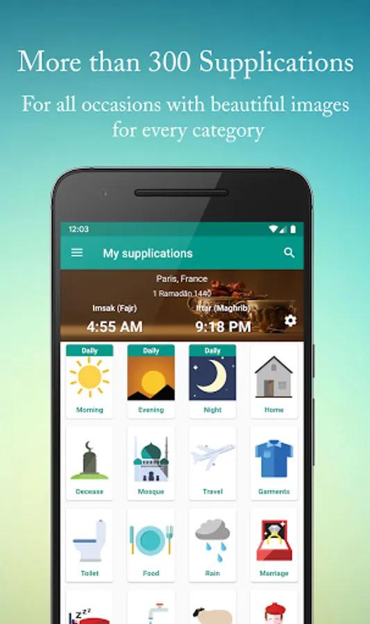 Daily Supplications PRO enables you to read and listen to more than 300 different islamic duaas everyday. It also features prayer times, Hijri date, qibla and custom reminders to give you the right supplication at the right time.