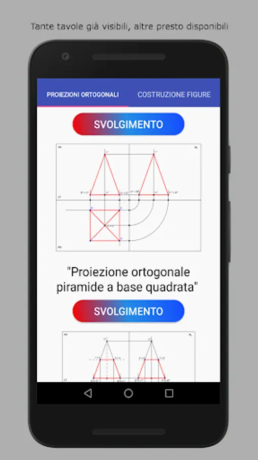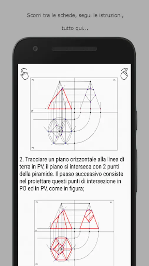 Application dedicated entirely to the world of technical design for first and second grade schools. You can take advantage of the "building figures" section to draw step by step various polygons; in the section "orthogonal projections", in the same way you can follow the instructions to perform the assigned exercise in the best possible way.