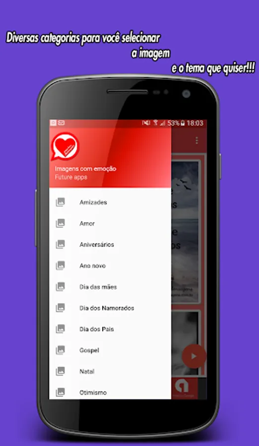 The best app in the store has arrived, exciting images for you to send to your loved one, messages for you to make the inner emotion happen, with this app you will not miss any important moment or commemorative date, make people happy, an immensity of images and phrases for you to share with your friends and family, a free app for all occasions, conquer your loved one, the perfect app to conquer women or men, works perfectly with WhatsApp, Facebook, Twitter, Telegram among others, that's right you will not pay anything to use our app and will still make the loved one feel emotional, there are several images.