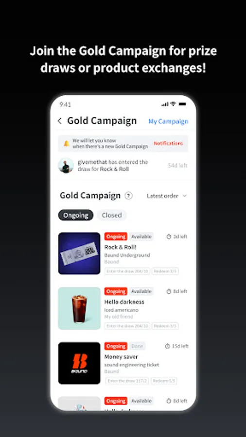 Gold Campaign is a program that provides exclusive benefits. Join it to participate in prize draws or product exchanges. Use Baund Gold to unlock even more rewards!